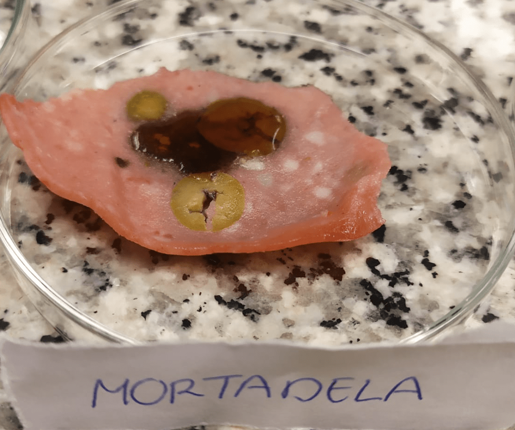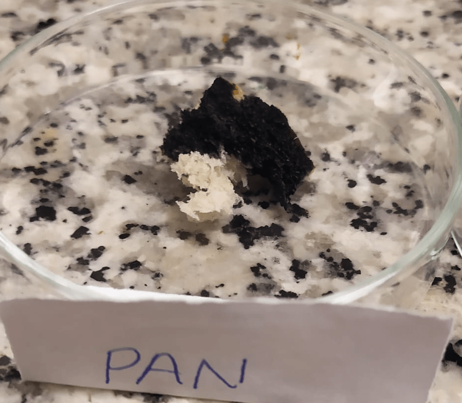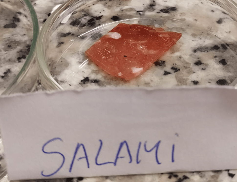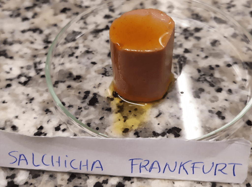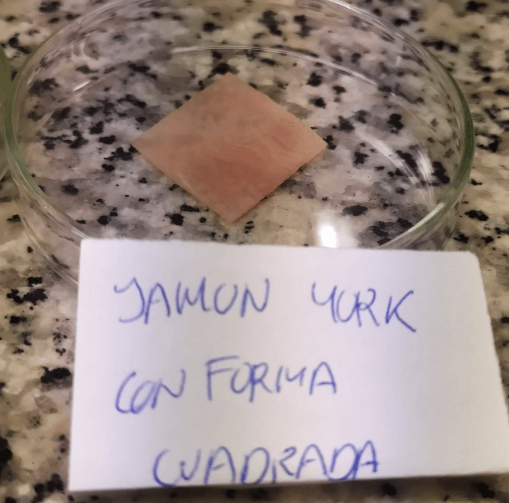 Primer paso, con el bisturí, se corta un pequeño trozo de cada alimento, se coloca en una placa petrí, una por alimento que no se toquen entre si.